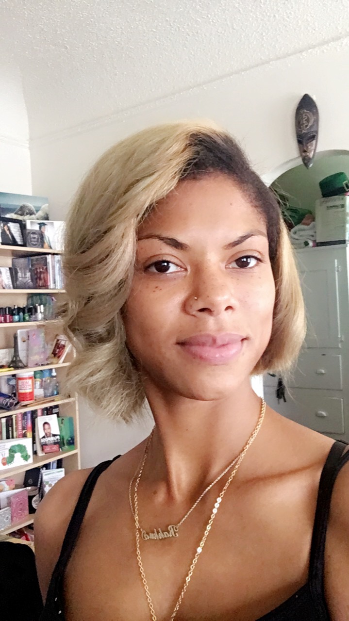 I've decided to embrace the green yall! In one of my latest posts, I talk about going blonde and how the experience was a little tainted by the residual green color that wouldn't lift out. Here's pics of that and the magic the stylist had to do to fix it: